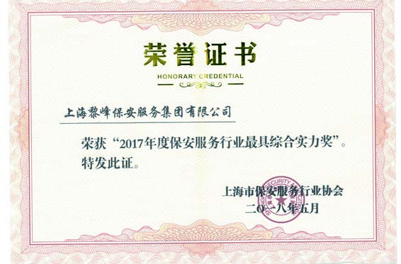 2015年 獲得上海市保安服務(wù)行業(yè)協(xié)會評定的保安服務(wù)壹級資質(zhì)